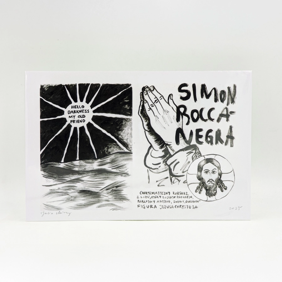 Ilustracja stworzona przez Julię Mirny pochodzi z katalogu postaci z „Simona Boccanegry” – serii grafik zamieszczonych w programie premierowym oraz na wystawie w foyer dolnym TW-ON.